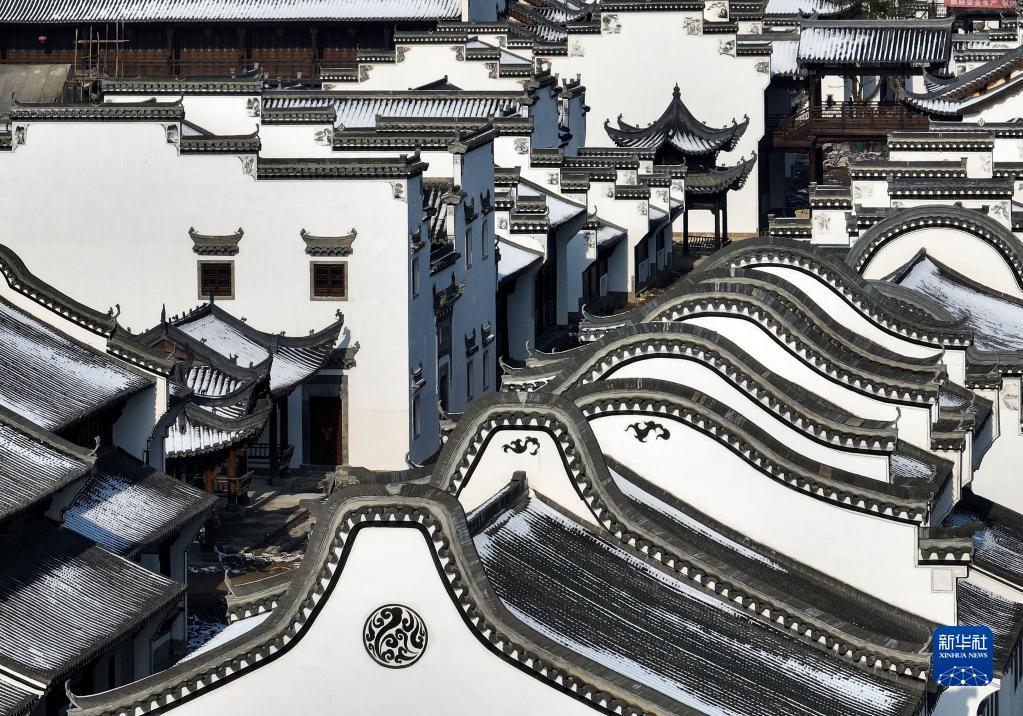 1月16日拍摄的湖北省孝感市云梦县祥云湾古建筑群雪后景色(无人机照片)。