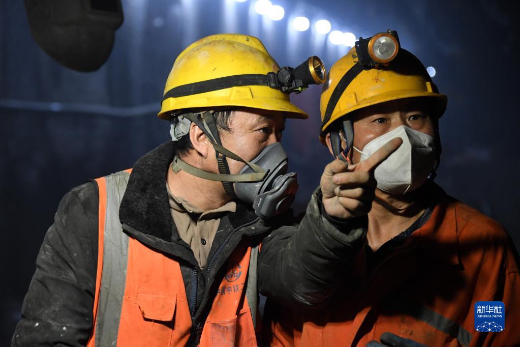 1月17日,两名中铁二局建设者在海底隧道施工现场交流。