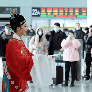 当日,一场“徽文化送我回家过大年”活动在合肥南站举行,安徽省黄梅戏剧院多位演员在候车大厅内为旅客带来精彩的黄梅戏演出,营造浓厚的春节氛围,让广大旅客回乡路上体验浓浓“年味”。