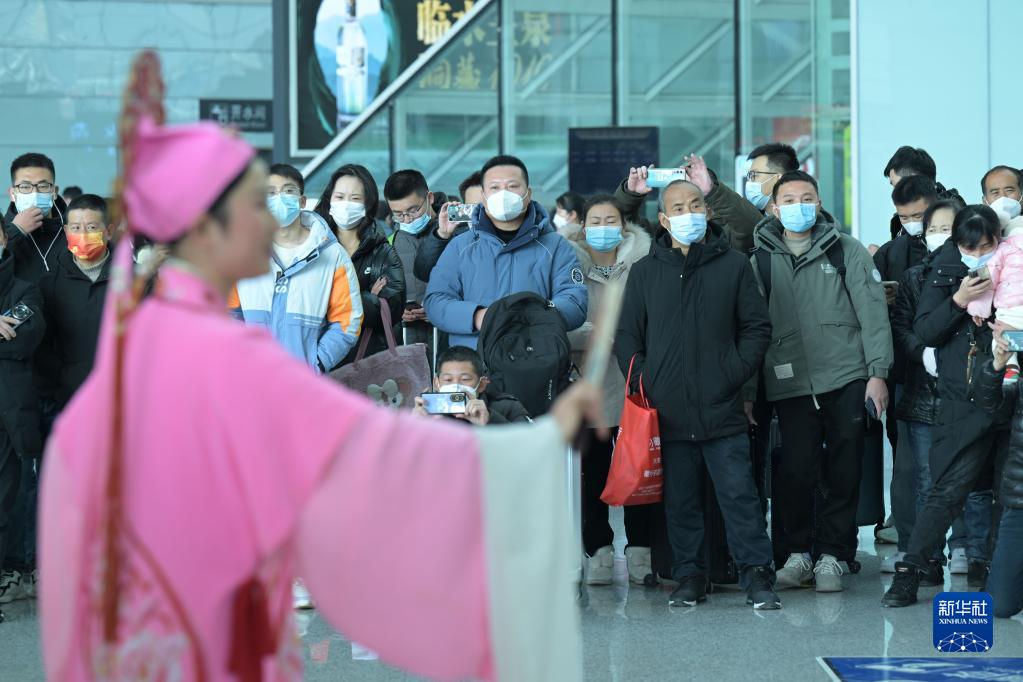 当日,一场“徽文化送我回家过大年”活动在合肥南站举行,安徽省黄梅戏剧院多位演员在候车大厅内为旅客带来精彩的黄梅戏演出,营造浓厚的春节氛围,让广大旅客回乡路上体验浓浓“年味”。