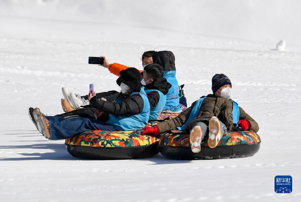 1月18日,残疾人在银川市阅海滑雪场体验雪圈项目。