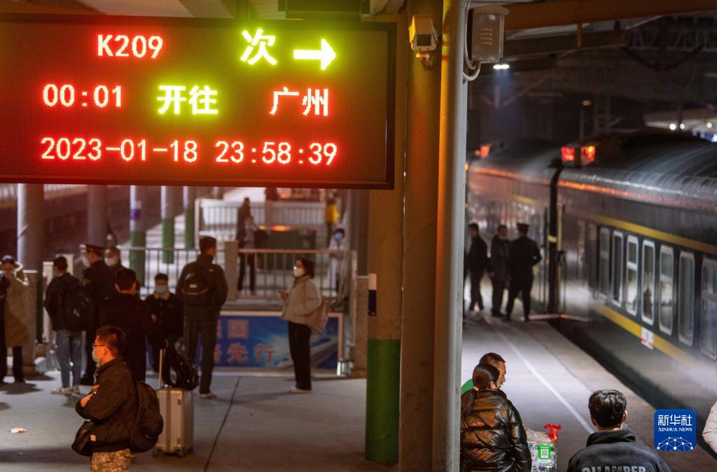 1月18日深夜,K209次列车停靠在上饶站站台。