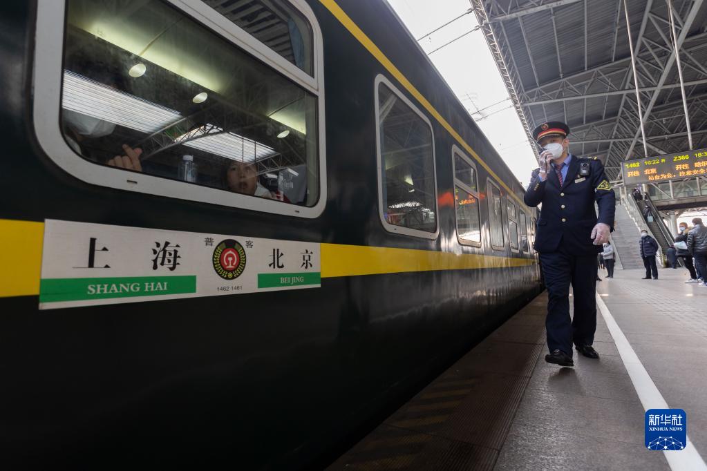由铁路上海客运段值乘的1462次列车是上海开往北京最便宜的一趟“绿皮车”,全程共22站,耗时22小时35分钟,因停靠沿线城市多、价格亲民,被旅客们亲切地称为“京沪神车”。记者跟随这趟“慢火车”,用相机定格这趟惠民列车上的春运面孔。