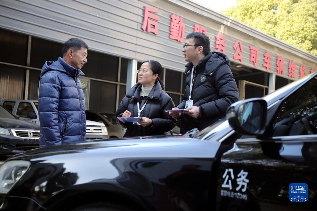 1月18日,纪检监察干部对照派车任务清单检查未派车辆定点停放情况。