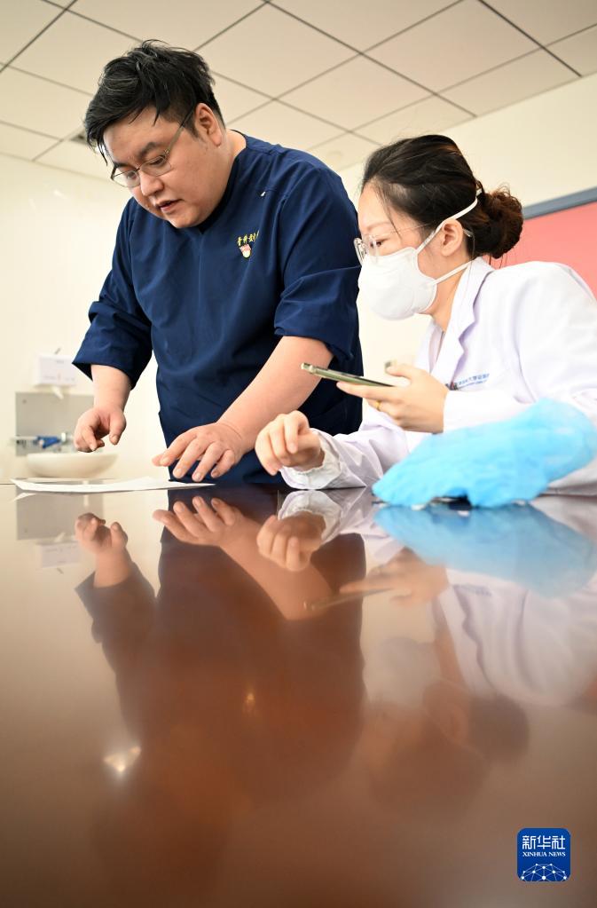 在天津医科大学总医院,刘洋(左)和同事确认患者信息(1月17日摄)。