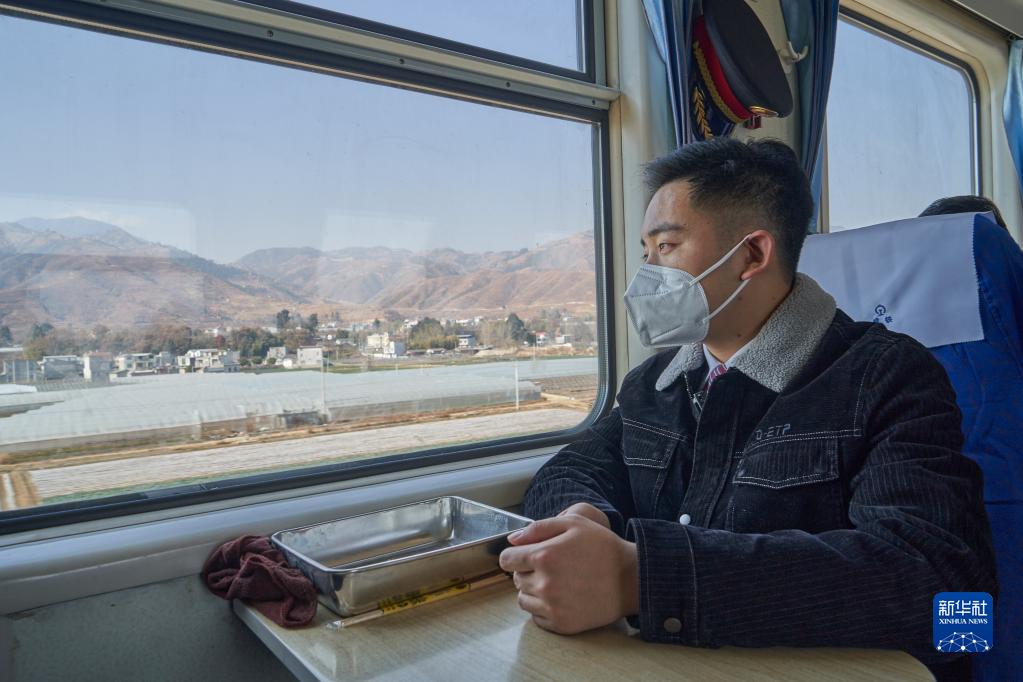 来自四川省凉山彝族自治州越西县的沙马伍且是新成昆铁路开通时的首发副司机,这是他参加的第一个春运。