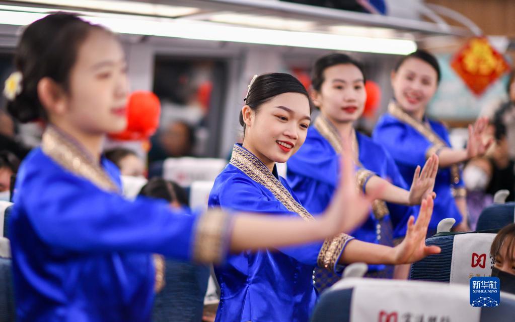 新华全媒+丨中老铁路列车春晚迎新春