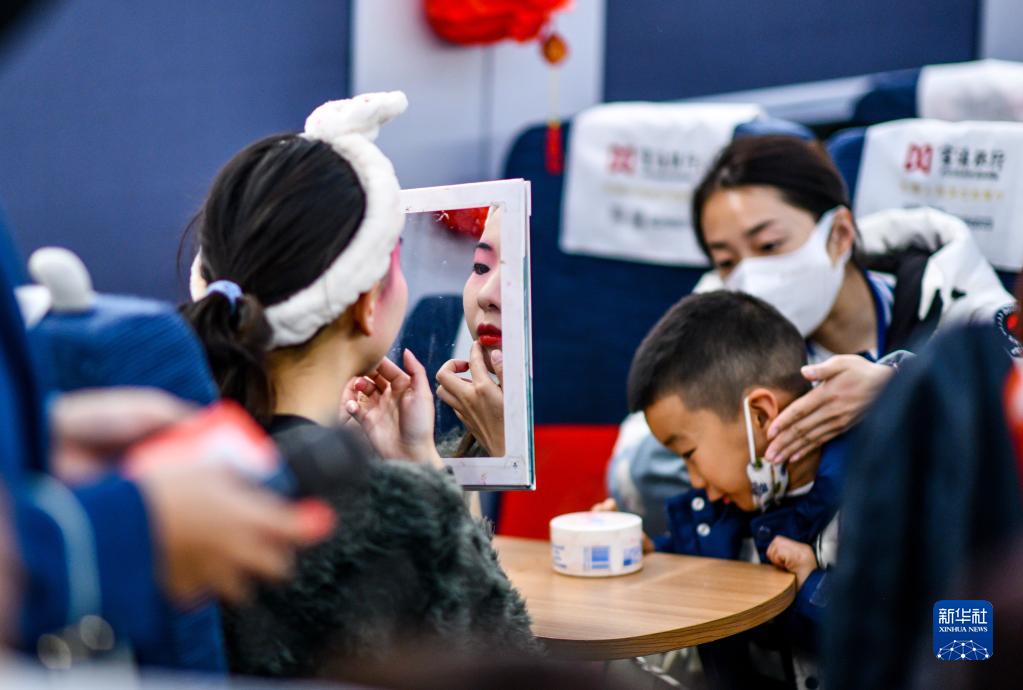 当日,奔驰在中老铁路上的C272次列车车厢内,一场以“中老一家亲,祥和中国年”为主题的列车春晚精彩上演。