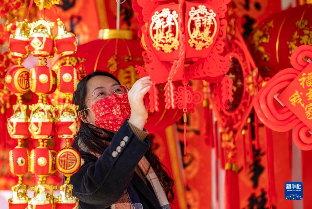 当日是农历腊月廿八,人们选购各式节庆用品,迎接农历兔年到来。