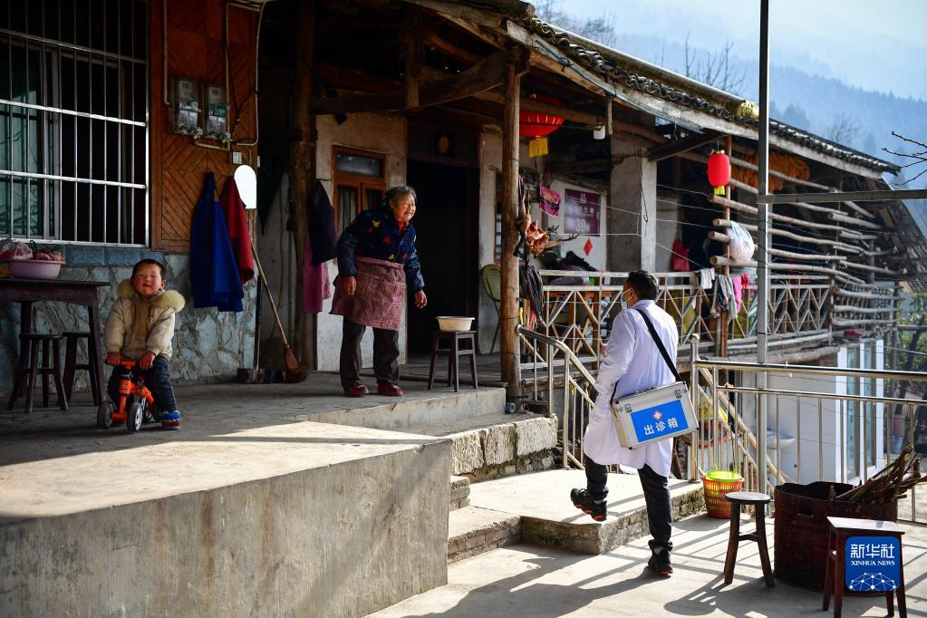 1月19日,在北川县曲山镇石椅村,村医赵太安入户走访重点人群。