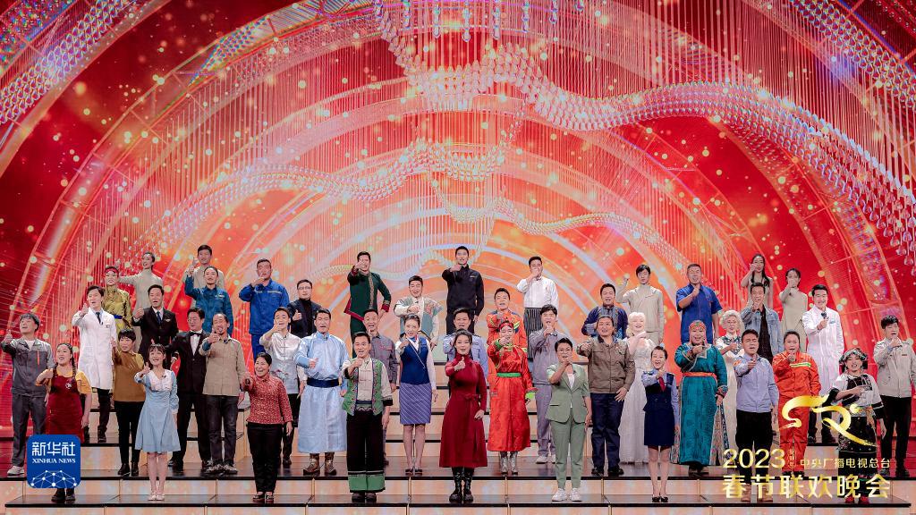 1月19日,中央广播电视总台《2023年春节联欢晚会》按正式直播标准流程顺利完成了第五次彩排。这是彩排现场。