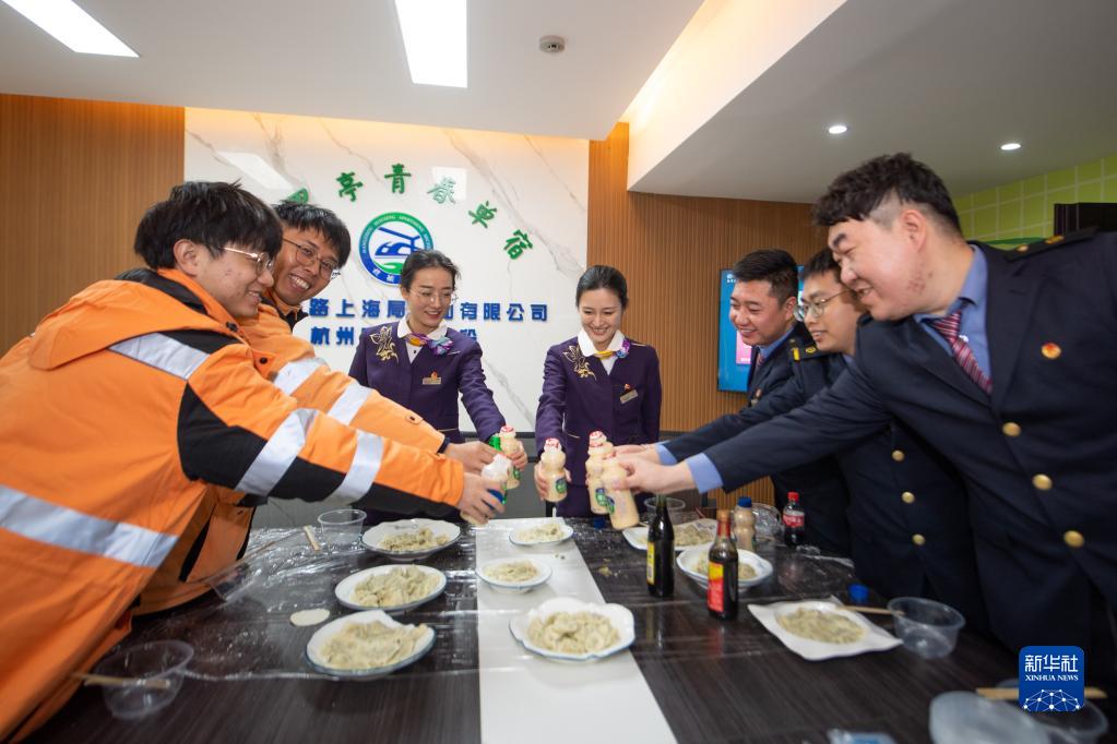 当日,中国铁路上海局集团公司团委在杭州三里亭铁路单身宿舍组织了“团·聚一家人”新春联欢活动,邀请春节期间坚守岗位、留宿宿舍的部分铁路职工一起包饺子、写春联、玩游戏,让奋战在春运一线的铁路职工感受到家的温暖。