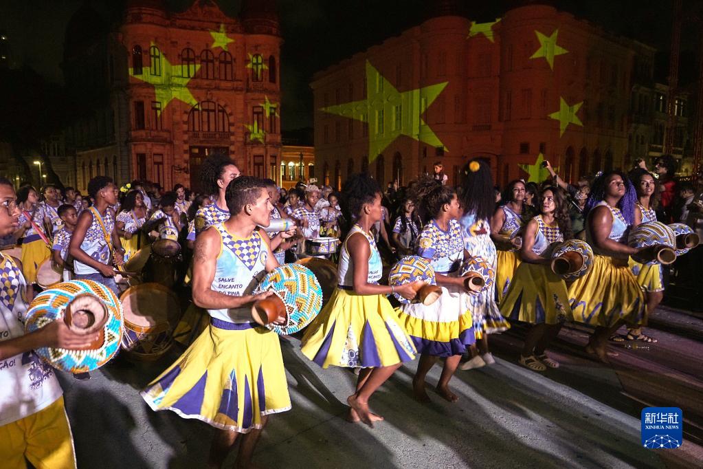 巴西东北部城市累西腓19日晚举行中国春节庆祝活动,通过中巴歌舞、舞狮表演、灯光秀等精彩节目喜迎兔年新春。2022年,累西腓市通过法案,将中国春节设立为该市的官方节日。