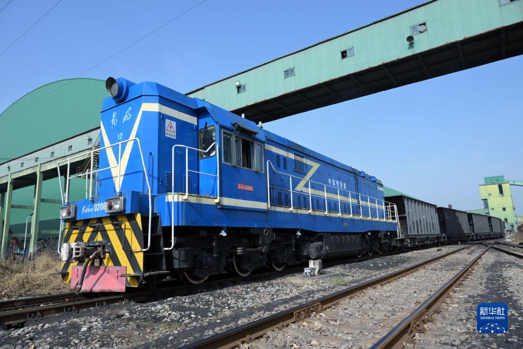 1月19日,在中煤新集能源股份有限公司刘庄煤矿,满载电煤的专列驶出矿区。
