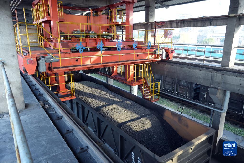 1月19日,在大唐安徽发电有限公司淮南洛河发电分公司,螺旋卸煤机在进行卸煤作业。