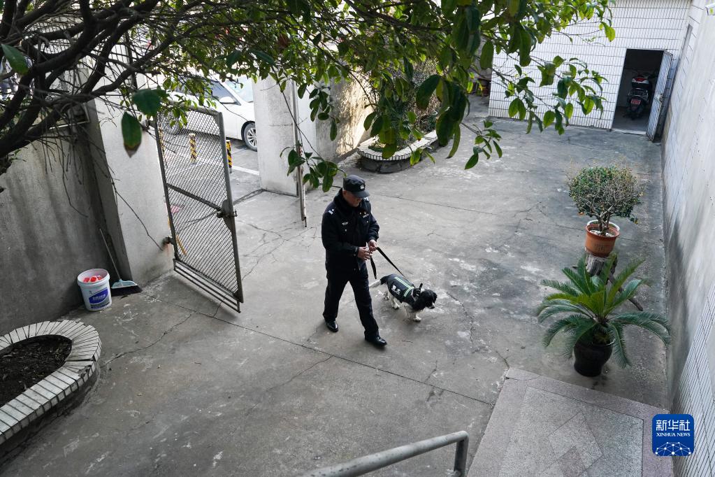 1月18日,民警王支斌和警犬“和平”在巡逻后回到裕溪口警务室。