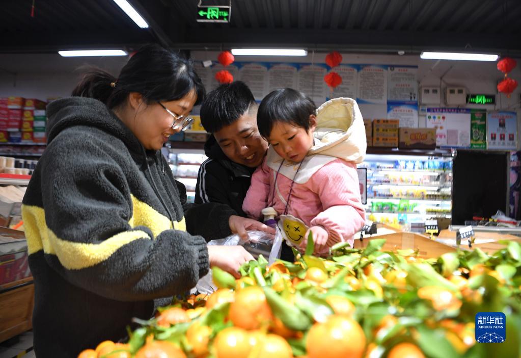 1月19日,靳亚克一家在镇上一家超市选购水果。