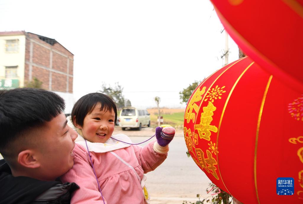 1月19日,靳亚克抱着女儿靳佳颖买灯笼。