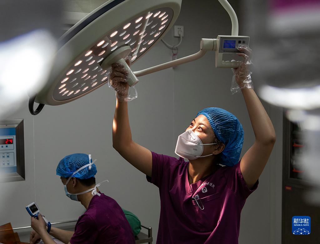 1月21日,河南省焦作市博爱县妇幼保健院的医护人员在手术室进行术前准备。
