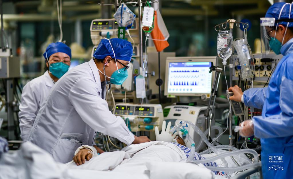 1月21日,云南省第一人民医院重症监护科医生倪矿在病房为病人检查。