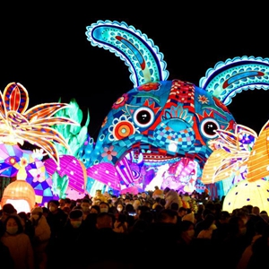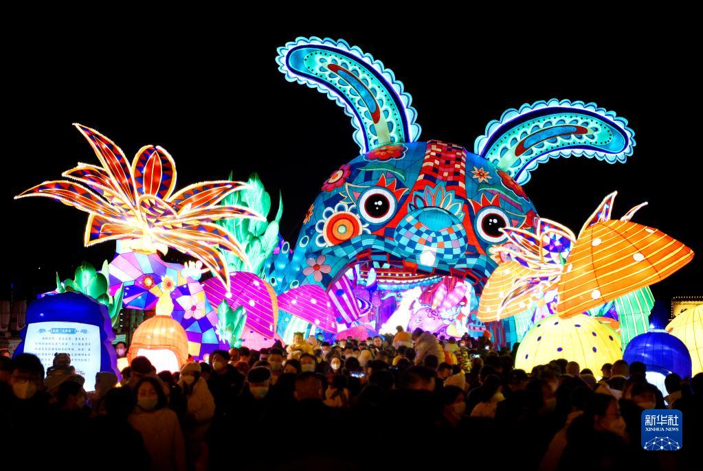 人们在西安城墙新春灯会赏灯游玩(1月20日摄)。