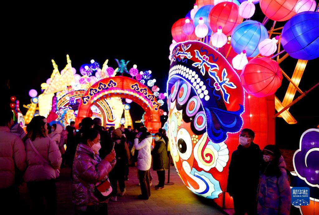 人们在西安城墙新春灯会赏灯游玩(1月20日摄)。