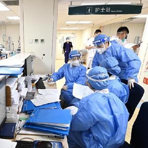 1月21日,北京大学第一医院急诊科的护士在抢救室为一名高龄重症患者吸痰。