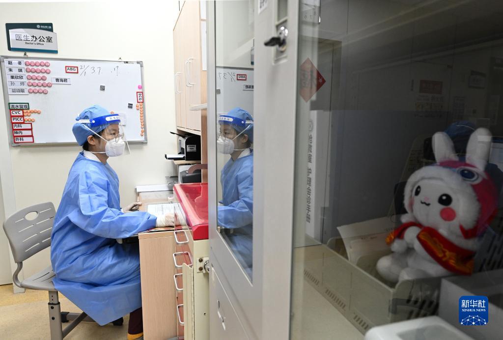 1月21日,北京大学第一医院急诊科住院总医师陈小岚在办公电脑上查询患者病历,她身后的记事板上标注着当班工作信息。
