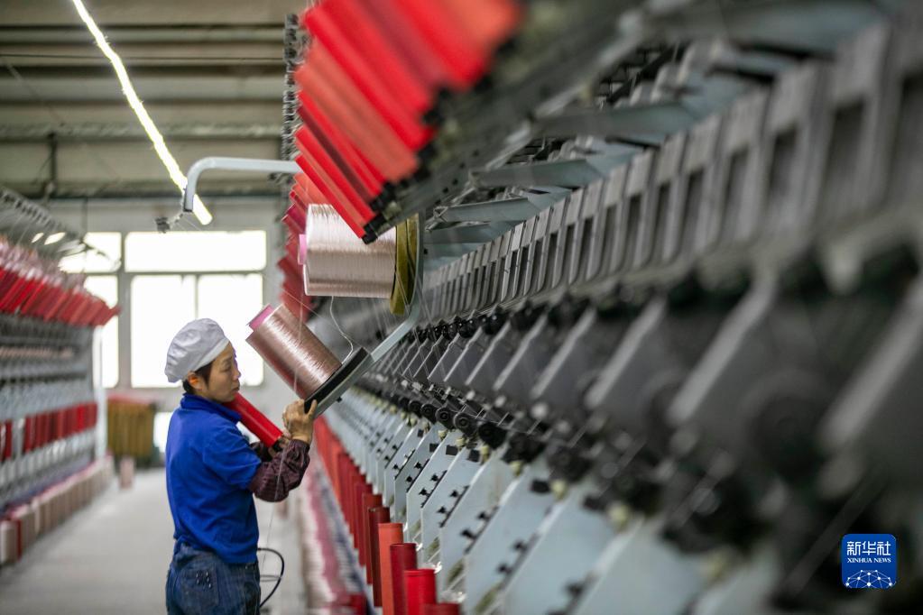 1月21日,在江苏同欣化纤有限公司,纺织工人在生产一线作业。