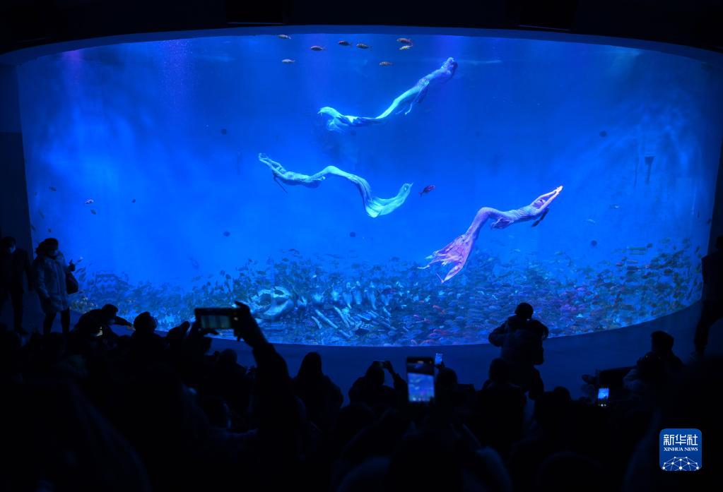 1月22日,市民在安徽合肥海洋世界观看“新春美人鱼表演”。