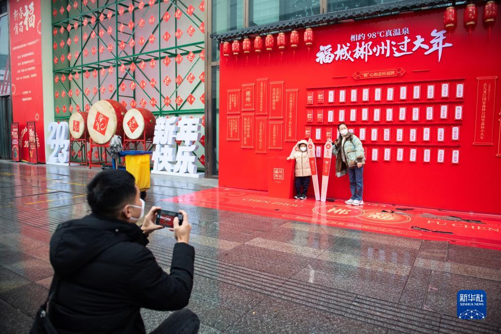 1月22日,市民在湖南长沙市天心区黄兴路步行街拍照。