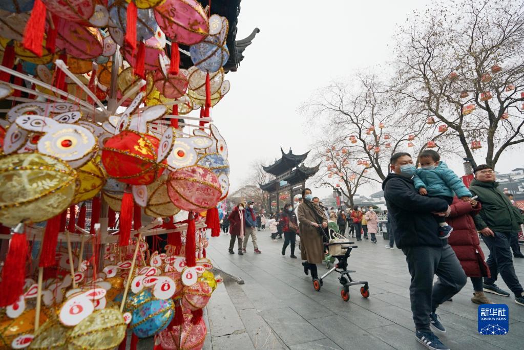 1月22日,游客在南京夫子庙景区游玩。