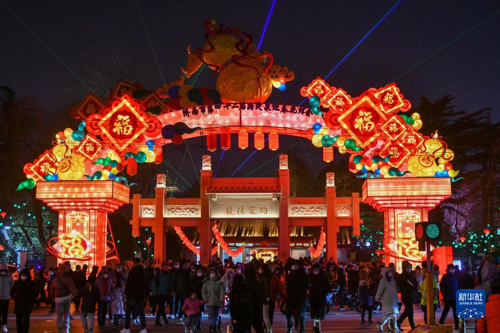 1月22日,济南趵突泉迎春花灯会吸引众多游人。