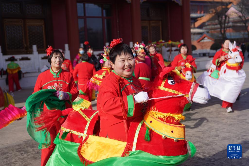 1月22日,在河北省廊坊市香河第一城,演员在表演花会,庆祝兔年春节。