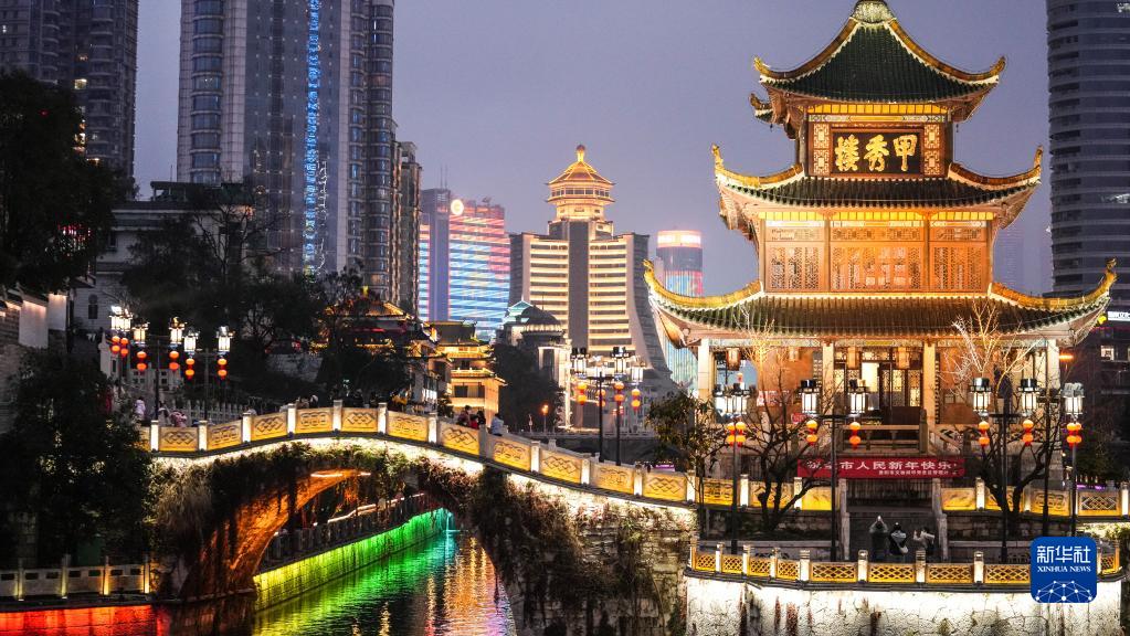 1月22日,人们在贵阳市南明区甲秀楼游玩。