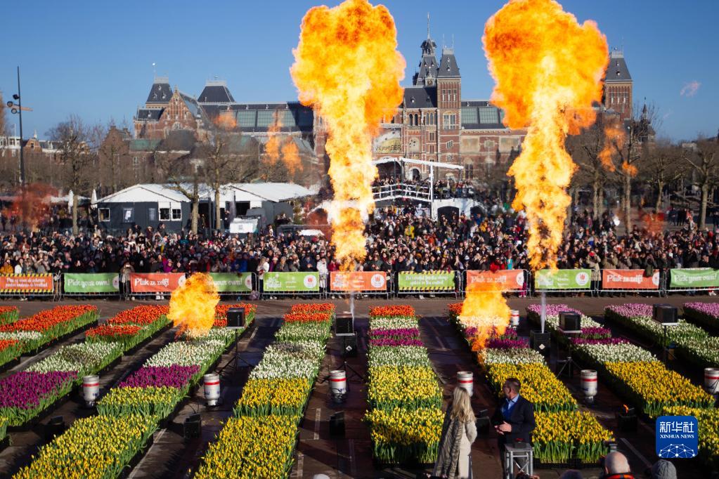 1月21日,荷兰阿姆斯特丹的皇家博物馆前摆着色彩斑斓的郁金香。