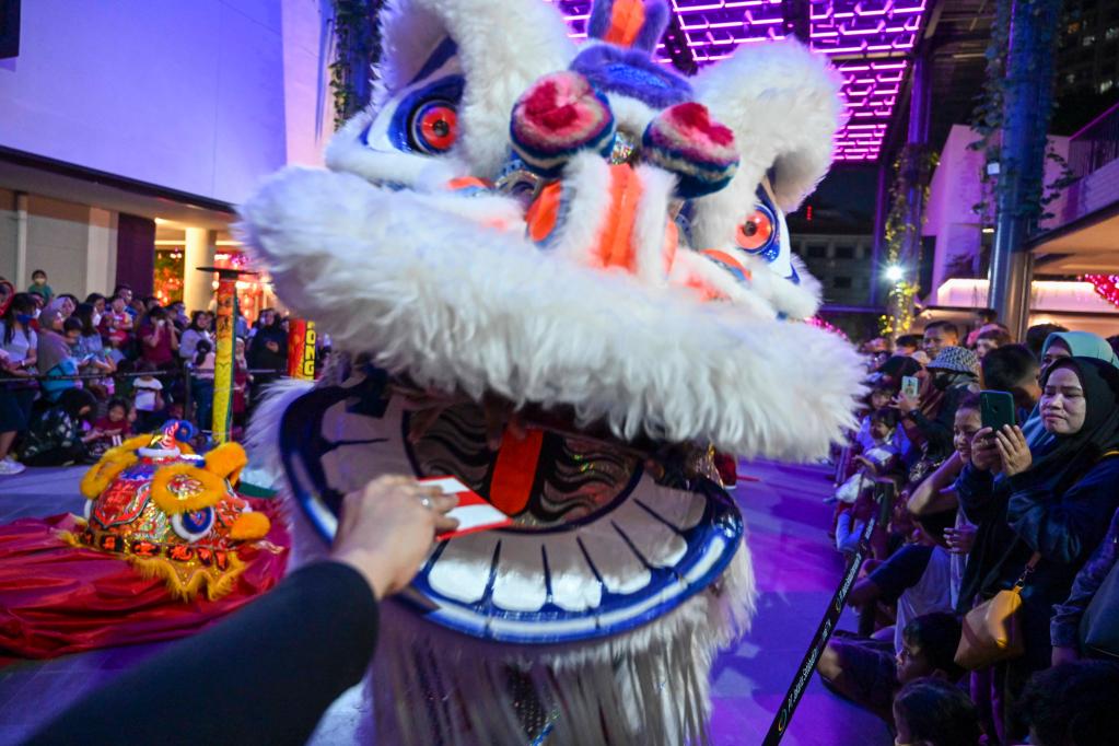 1月21日晚,演员在印度尼西亚雅加达春节庆祝活动上表演舞狮。