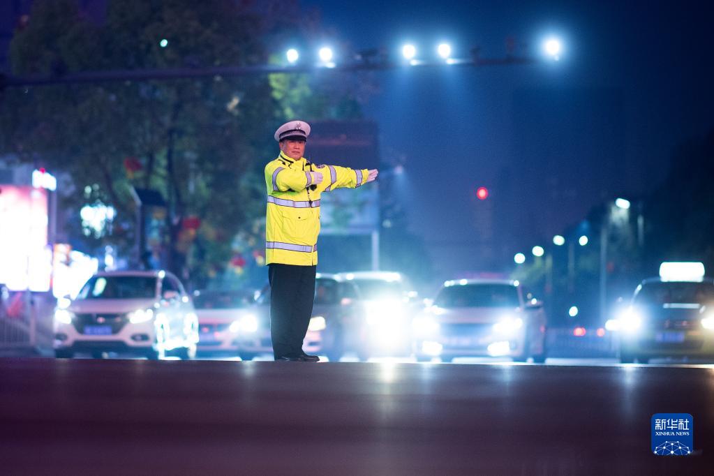 1月21日除夕夜,梅大顺在宜昌市城东大道指挥交通。
