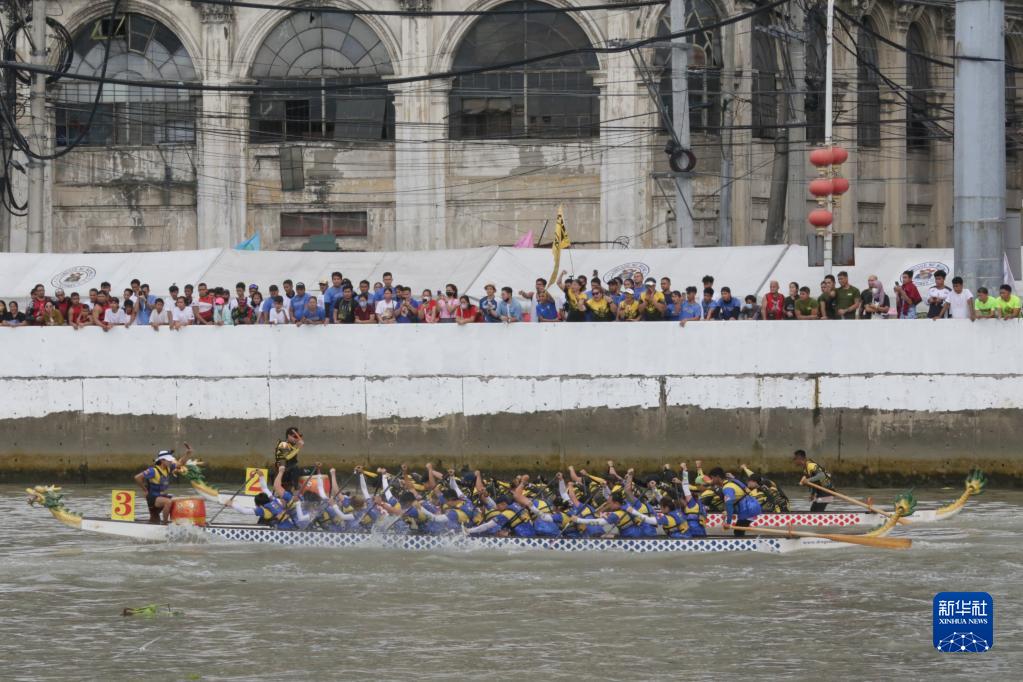 马尼拉当日举办龙舟赛活动,庆祝农历新年的到来。