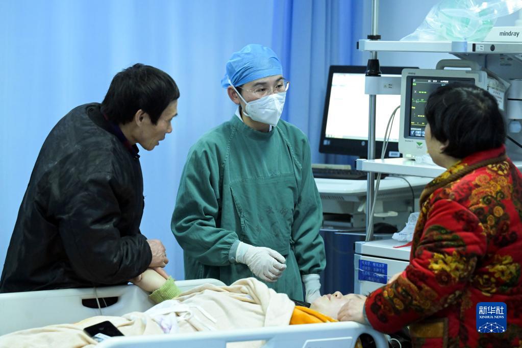 1月21日除夕夜,在安徽医科大学第二附属医院急诊抢救室,医护人员与患者家属交流。