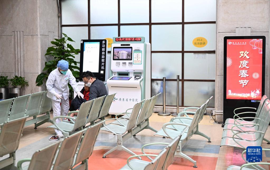 1月21日除夕夜,广东省中医院大德路总院急诊科的医护人员为小朋友检查。