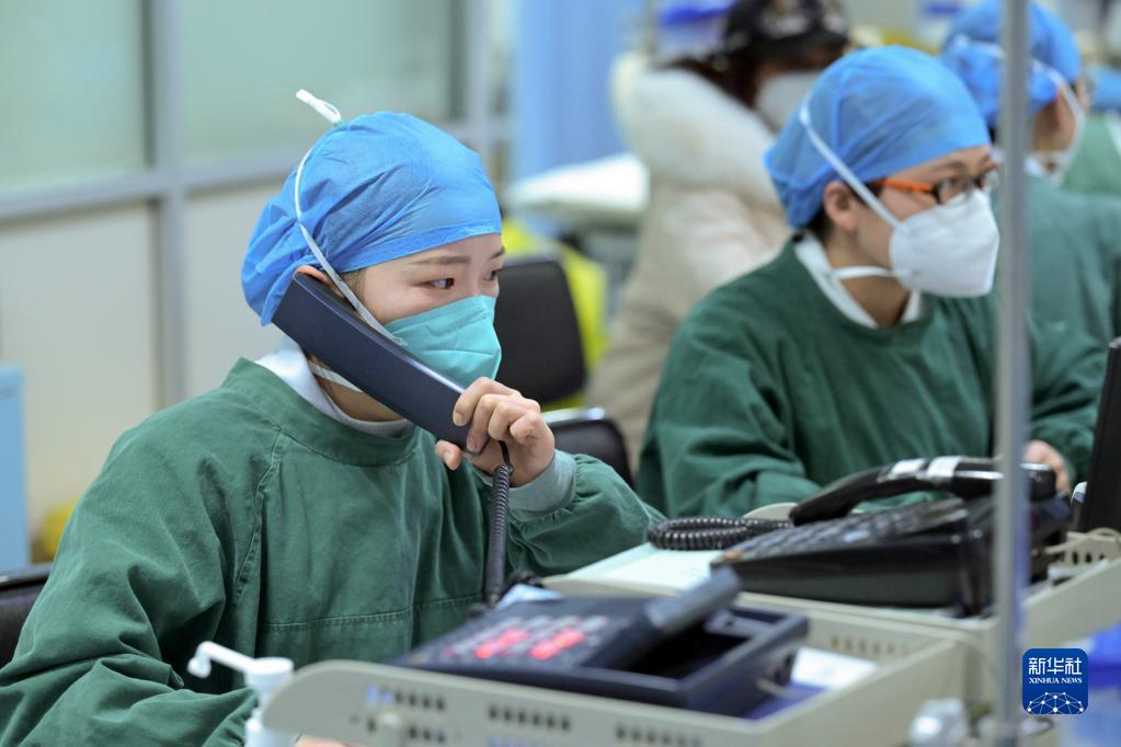 1月21日除夕夜,在安徽医科大学第二附属医院急诊抢救室,医护人员电话联系其他专科会诊。