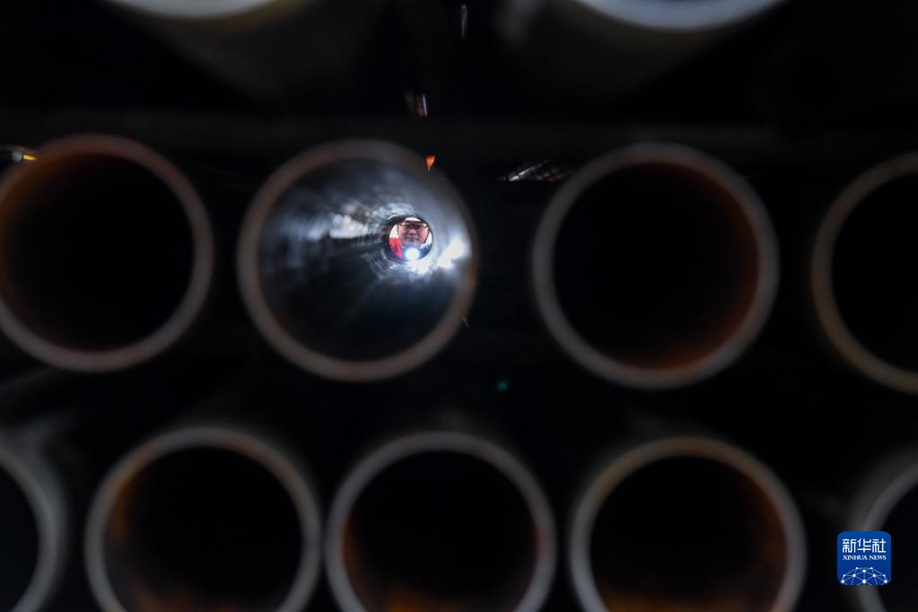 1月20日,平台总监高阳在西江23-1平台上检查管具状态。