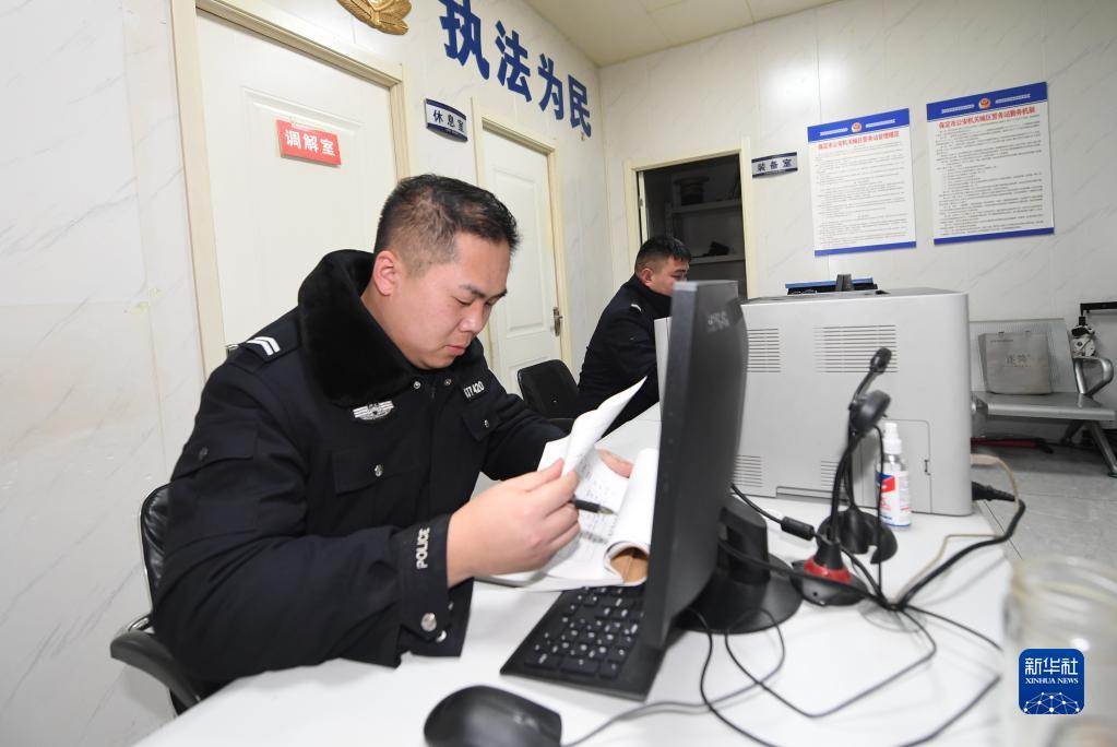河北唐县公安局中天警务站民警在除夕值夜班(1月21日摄)。