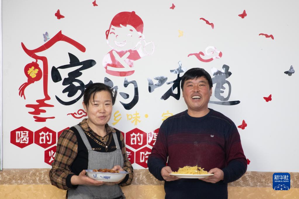 1月12日,在黑龙江省漠河市北红村农家乐,任金红(右)和妻子准备给游客上菜。