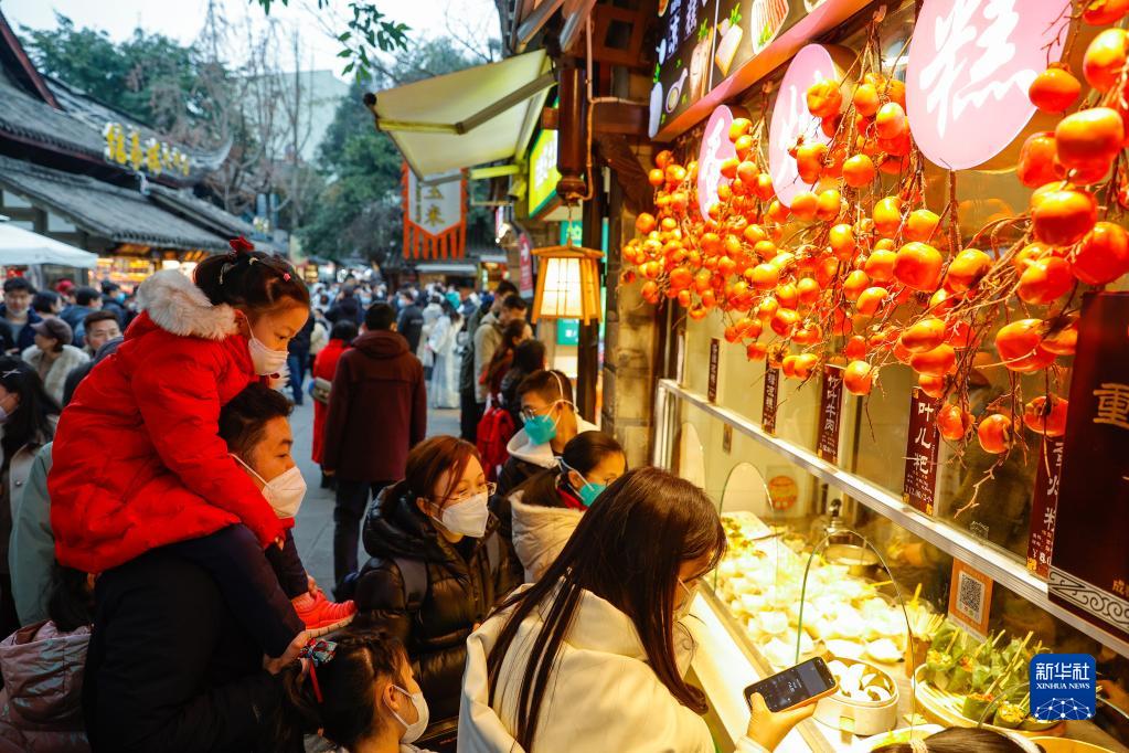 1月22日,人们在2023武侯祠成都大庙会购买传统小吃。