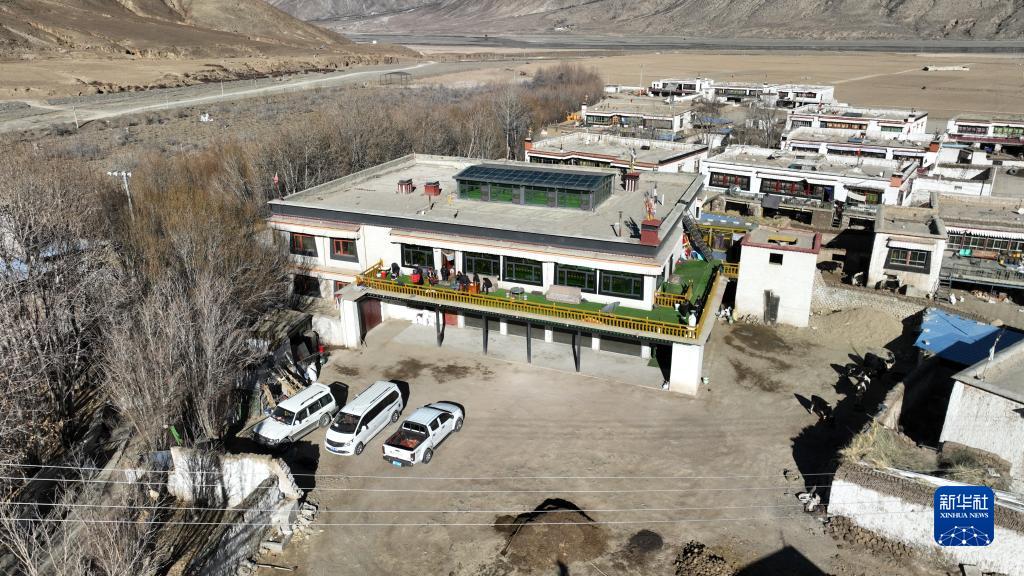 西藏日喀则市拉孜县扎西宗乡杂村次旦老人家的二层小楼(1月22日摄,无人机照片)。