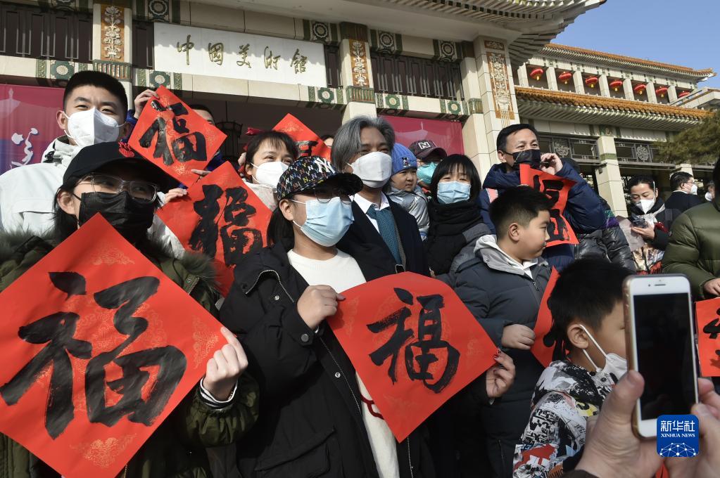当日是大年初一,中国美术馆在前广场举行送“福”贺新春活动,邀请书法家现场为观众书写并赠送“福”字,共贺新春佳节。