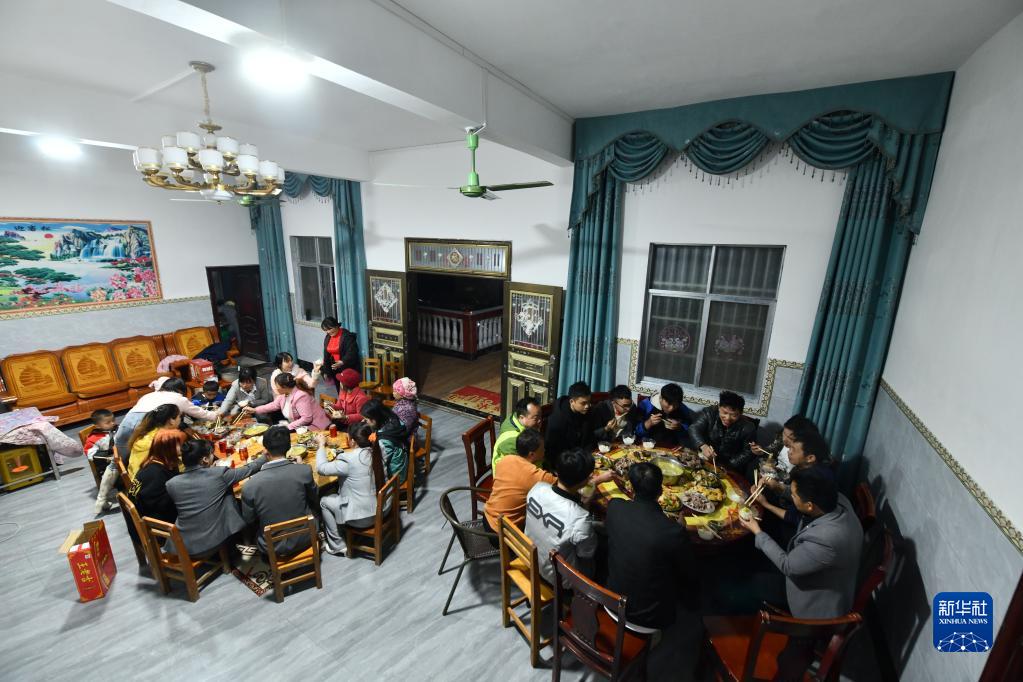 蒙宣任、蒙宣汰兄弟在亲戚家吃团圆饭(2023年1月20日摄)。