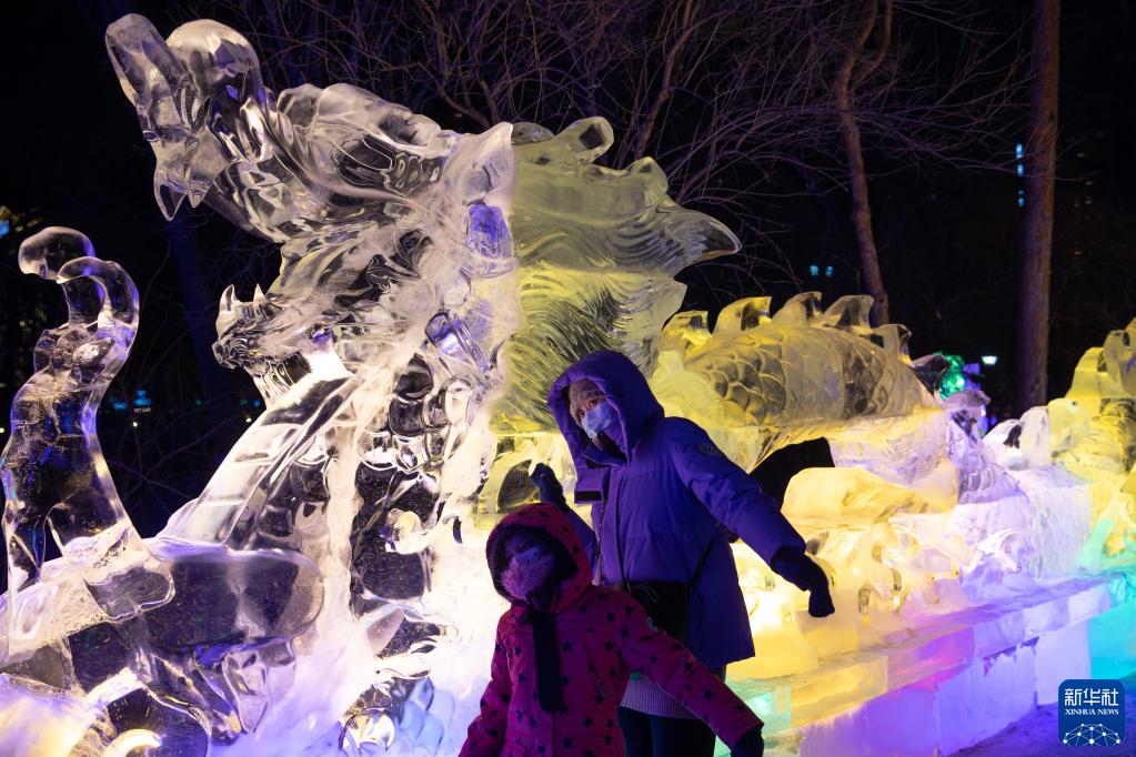 春节假期,许多游客与市民来到哈尔滨冰灯艺术游园会园区,观赏冰雕,感悟冰雪艺术的魅力,畅享假期。